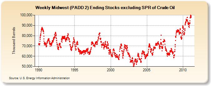 A graph of recent PADD2 storage (the entire amount, not just Cushing) is shown in Figure 9.