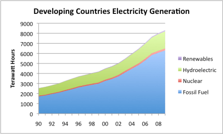 What I have called the “developing countries” (calculated as the World – OECD – FSU), have very rapidly growing energy use, but historically, very little nuclear use-a little over 2%. They would be least affected, as long as they could continue to expand their fossil fuel use (mostly coal) and their hydroelectric. These are big ifs, of course, as the world is running into limits with both fossil fuels and hydroelectric. Some of these countries (including China and India) are planning big increases in nuclear production in the future.