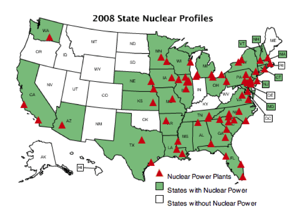 Within the United States, there is also variability in the proportion of electrical power from nuclear, with the largest concentration of nuclear power being on the East Coast and in the Midwest.
