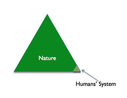 Figure 2.My representation of relationship of systems created by humans to the natural system, at the present time.