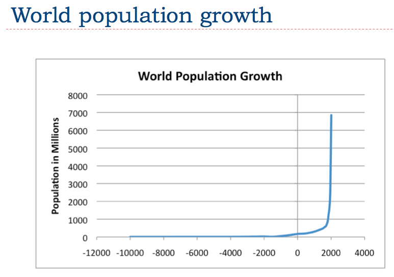 If we look at a graph of world population, we see that growth has been particularly evident in the last 100 or 200 years.