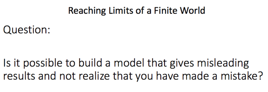 After the audience had a chance to answer this question (mostly with yes), I gave my answer: “Yes, indeed, it is possible to build a model that gives misleading results, and not understand the situation.” For example, a flat map works as a perfectly adequate model in some situations. But when longer distances are involved, a globe is needed. A two-dimensional model works for some purposes, but not for others.