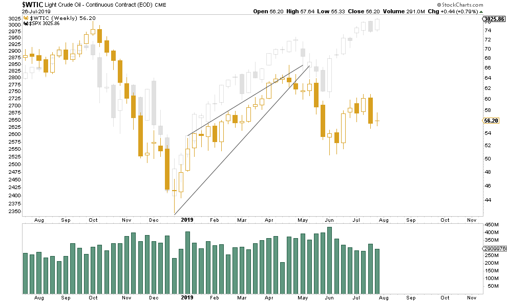 WTI and S&P 500 started to move in opposite directions in May this year.