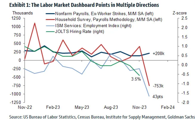 Three of the four indicators of labor market activity point to a recent downturn in employment in the US. The one doing best is the JOLTS hiring rate.